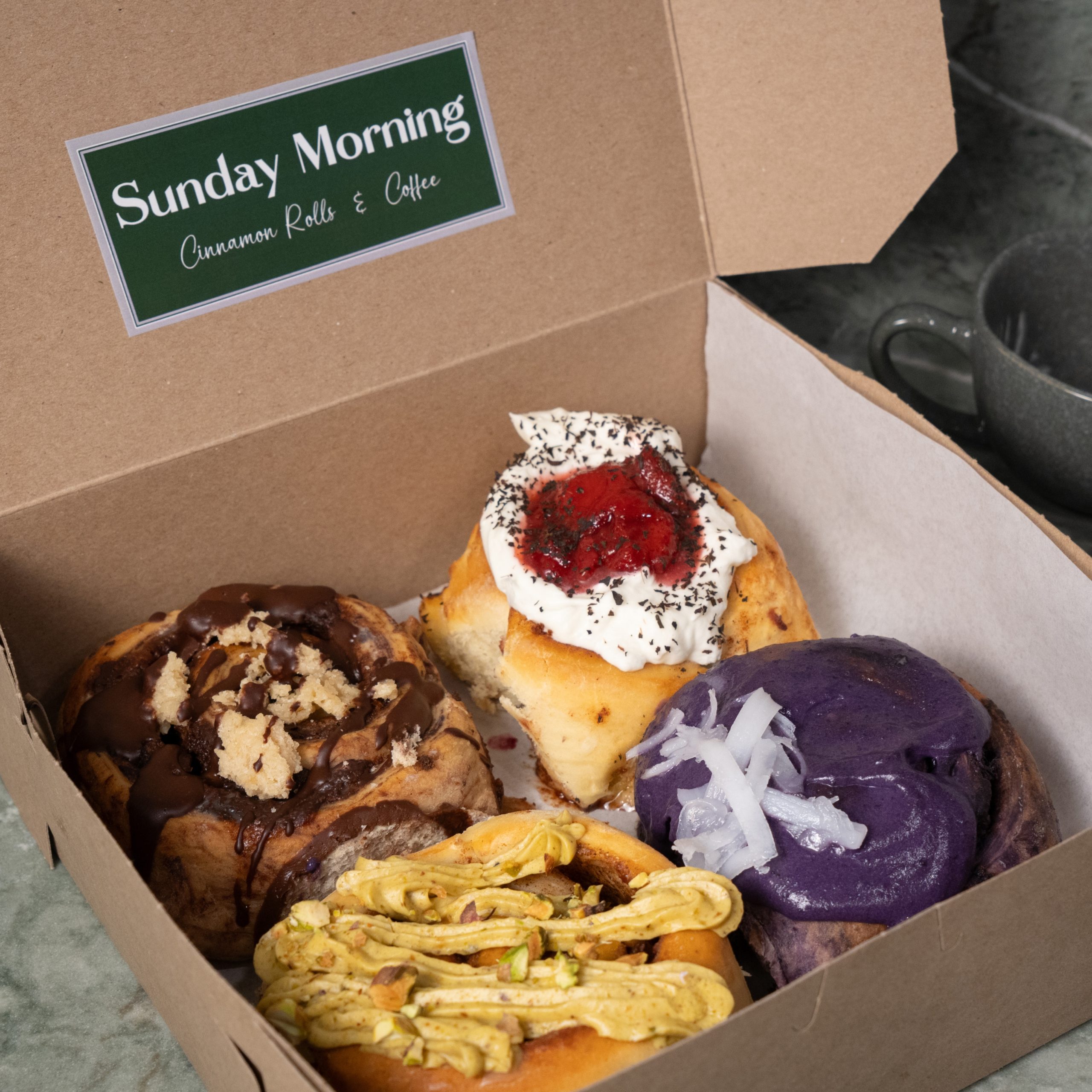 Made-fresh daily, guests can enjoy a variety of 10 cinnamon rolls from classics like Sugar Glazed and Cream Cheese Frosted to unique options like Caramel Pecan and Bananas Foster. For more fruit-forward flavors, order the Strawberry Earl Grey with strawberry preserve and bergamot cream cheese or the Blueberry Lemon Curd with house-made blueberry preserve and lemon curd. On weekends, specialty flavors include Ube Macapuno featuring coconut preserve and ube yema, Filipino custard with purple yam and Guava & Cheese with guava paste, light cream cheese frosting, and topped with a wedge of queso blanco. Pair your cinnamon rolls with a classic drip coffee, espresso, or tea. Stop by Sunday Morning for your next treat and savor delicious cinnamon rolls! Sunday Morning is open Monday – Friday from 9 am – 4 pm and weekends from 10 am – 4 pm or until sold out.