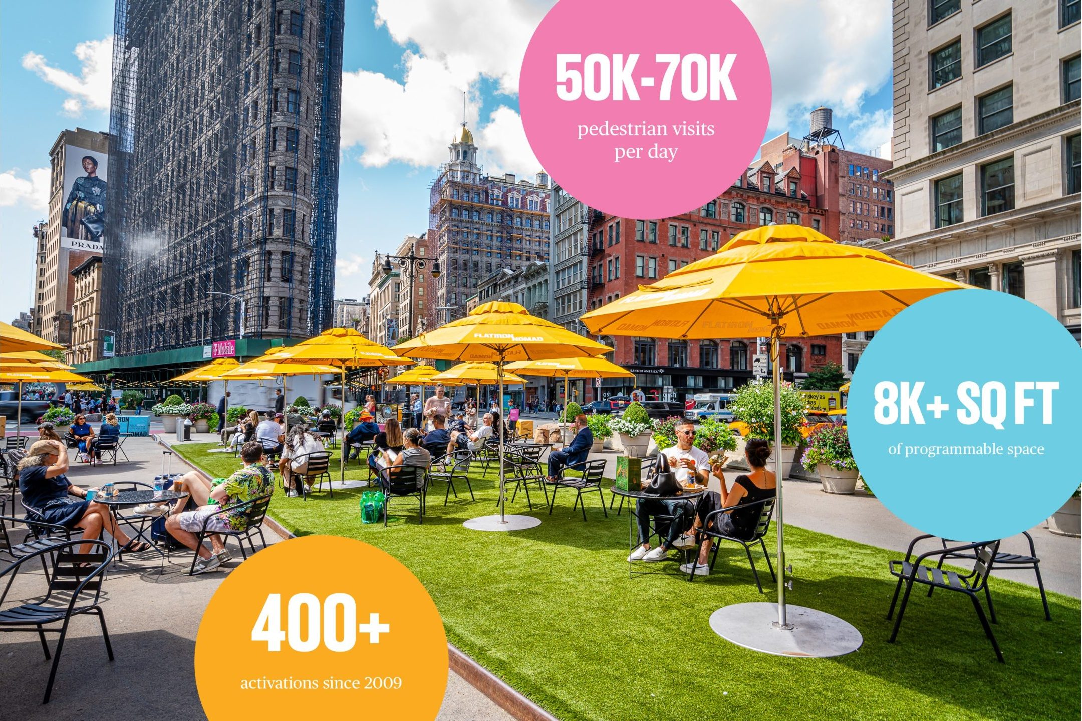 We maintain, manage, and beautify the Flatiron North and South Public Plazas in agreement with NYC DOT. Marketing activations and film/photo shoots are permitted through the Mayor’s Office via Citywide Event Coordination and Management (CECM), Street Activation Permit Office (SAPO), and Mayor’s Office of Media and Entertainment (MOME).