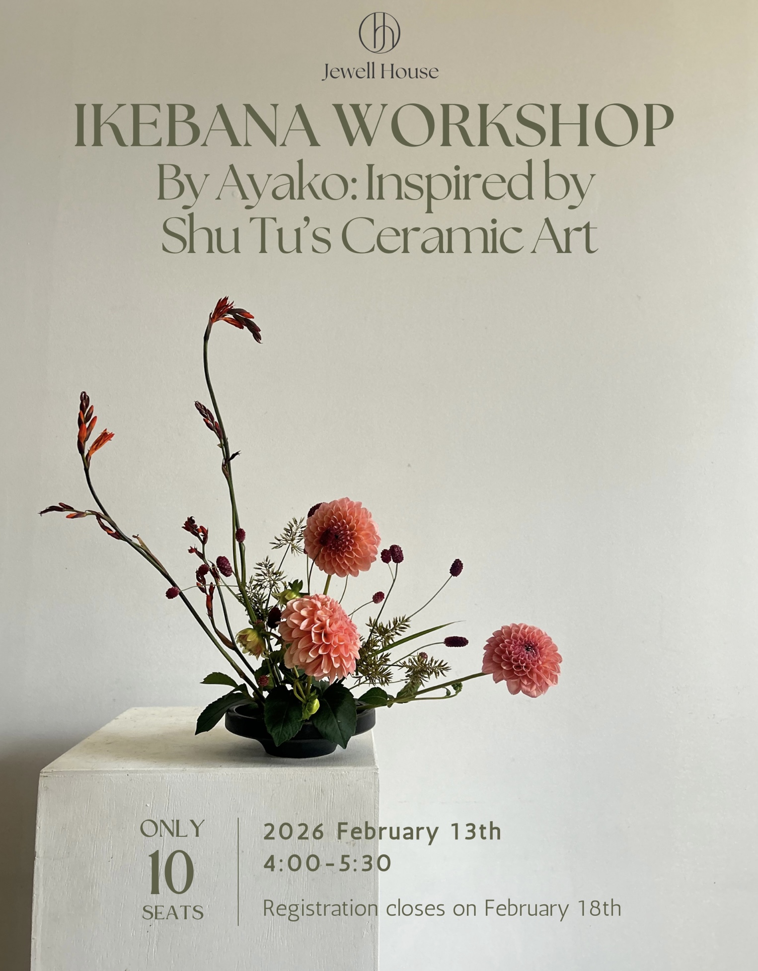 Jewell House NYC: Ikebana Workshop by Ayako: Inspired by Shu Tu’s Ceramic Art