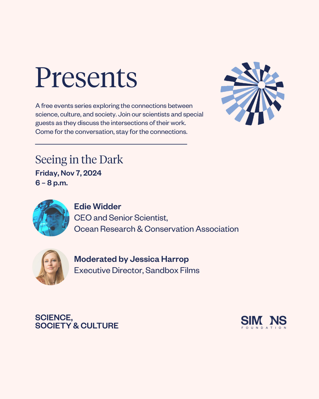 Join us as Widder sits down with Jess Harrop, executive director of Sandbox Films, for a conversation that will span everything from how Widder first became fascinated by bioluminescence to what it’s like to encounter fantastic life forms such as the elusive giant squid. Come hear more about how Widder helped reveal a world hidden below the waves.