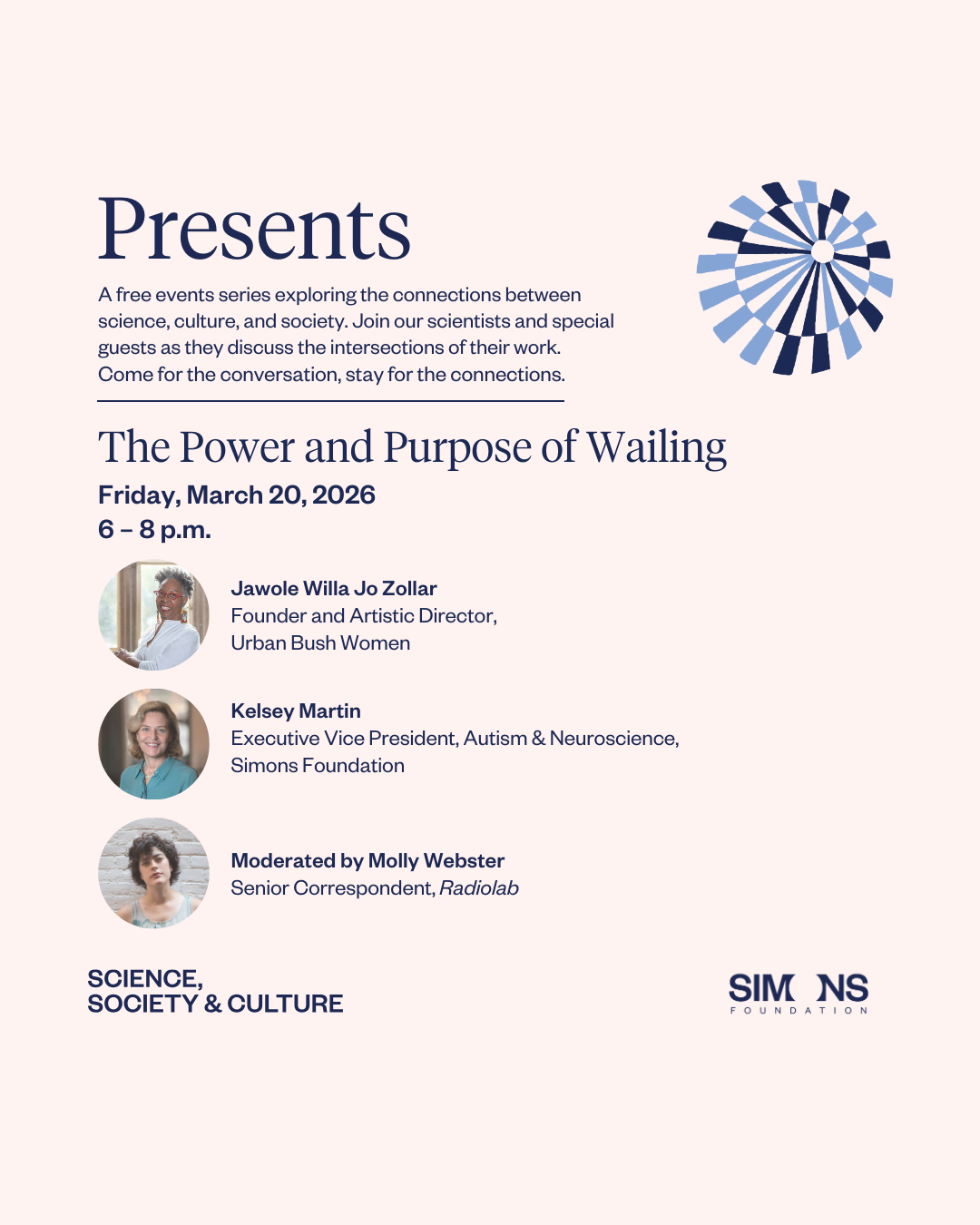 Choreographer Jawole Willa Jo Zollar, founder of Urban Bush Women, has spent over 40 years blending modern dance, African diasporic forms, theater and spoken word. The group’s works are rooted in cultural memory, community practices and personal narratives. Kelsey Martin is the executive vice president of autism and neuroscience at the Simons Foundation. She has spent her scientific career trying to better understand the neural mechanisms underlying human emotions and memory, and how our experiences shape who we are.