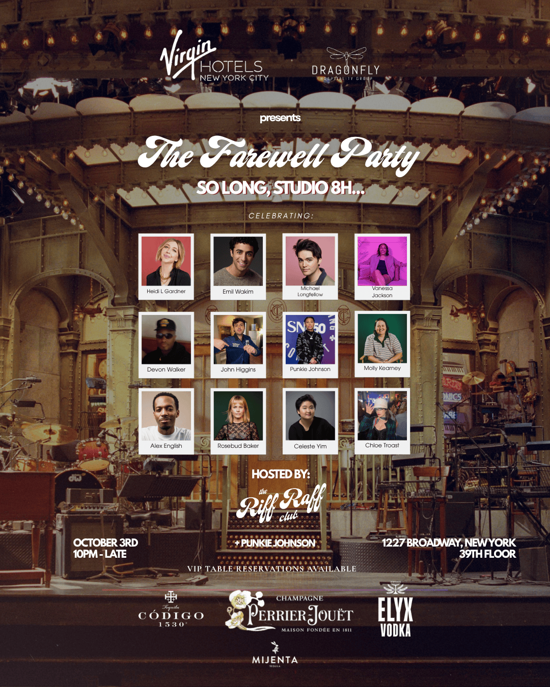 Join us for an unforgettable celebration of past members from Saturday Night Live. Hosted by The Riff Raff Club along side SNL alumni Punkie Johnson, the night brings together cast members, industry friends, and cultural tastemakers. With sweeping 39th-floor views of the Empire State and the NYC skyline, guests can expect a vibrant mix of music, comedy, and nightlife energy.