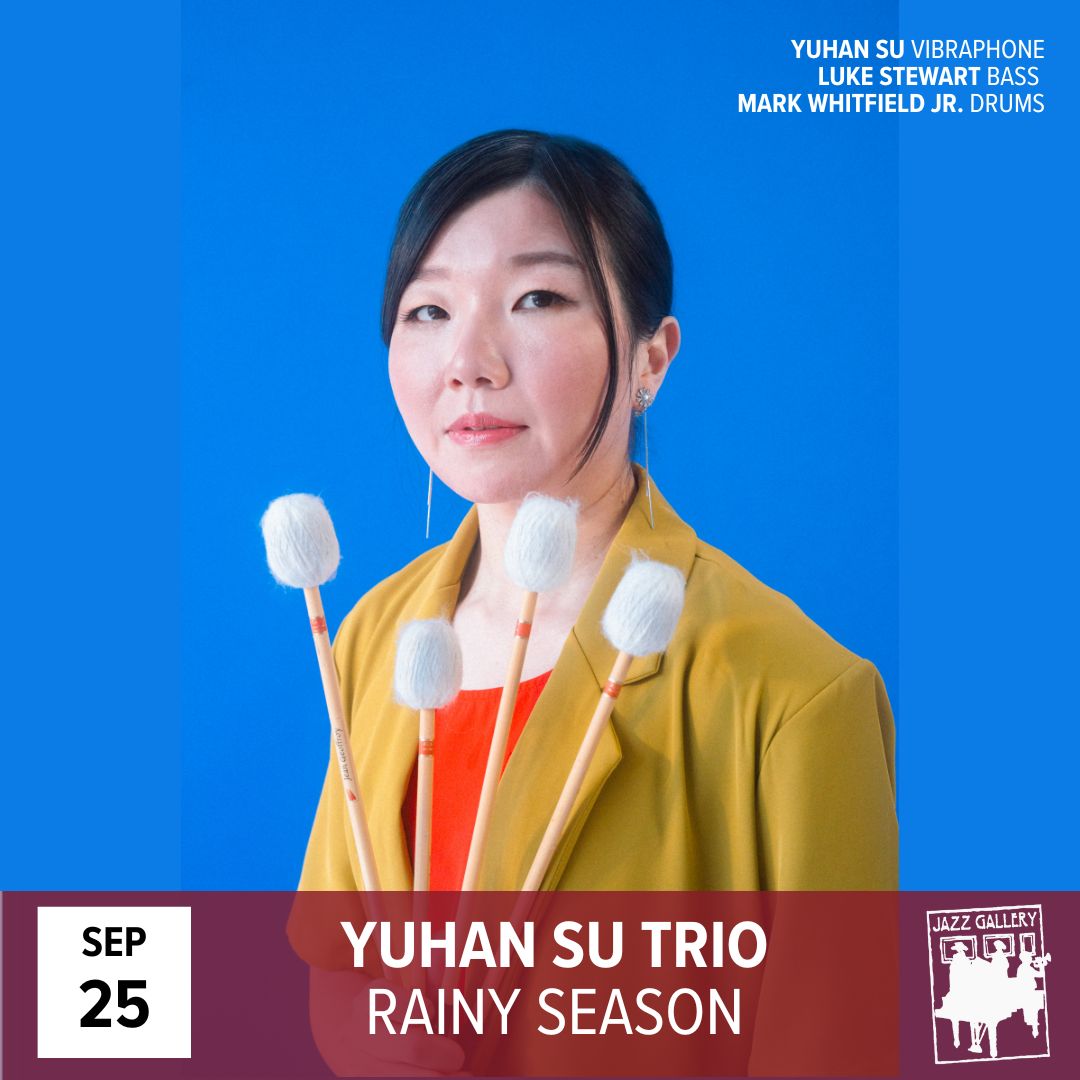 The TJG 2025 commission award recipient Vibraphonist/Composer Yuhan Su will premiere a new set of music Rainy Season written for a fantastic new trio featuring Luke Stewart on bass, Mark Whitfield Jr. on drums and Yuhan on Vibraphone with electronics. The inspiration of this collection of songs comes from her history with heavy rains, the connection to home, and the reflection on life events. It continues her exploration with sounds, counter-melodies, groove and interplay.
