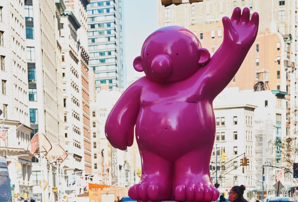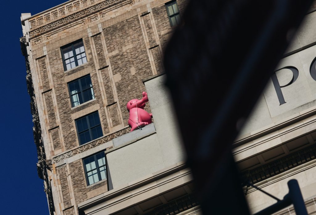 NEW YORK, NY – Today, the Flatiron NoMad Partnership introduces New Yorkers to the district’s newest creative resident: Mr. Pink, a public art trail of 10 illuminated inflatable and resin sculptures perched on rooftops and public spaces across the Flatiron and NoMad neighborhoods. The installations are brought to the city through the Partnership’s annual Winter Glow program that transforms the district into a vibrant public destination of immersive public art exhibits accessible for all to enjoy this winter season.