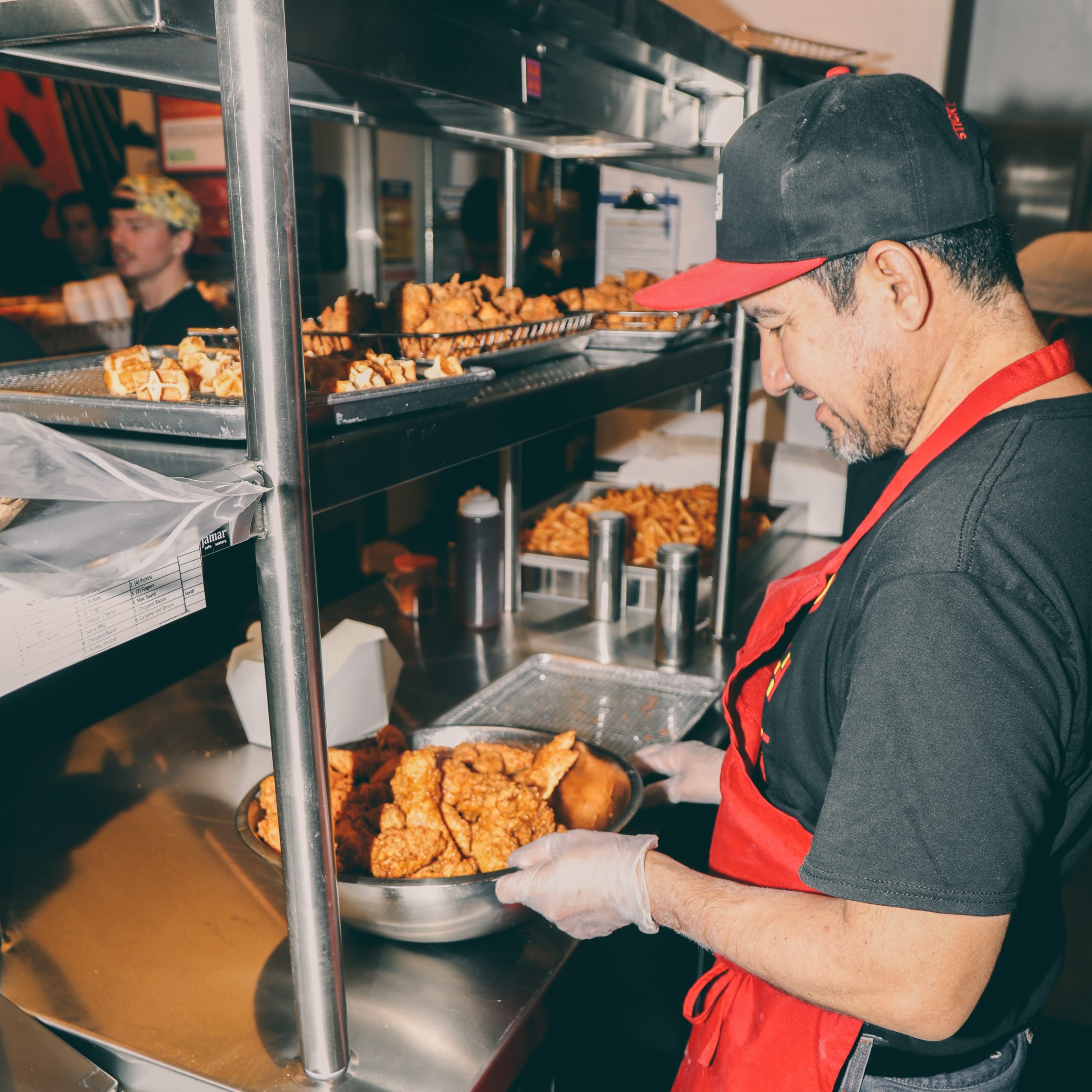 In addition to striving to serve “the best damn chicken finger you have ever tasted,” Sticky’s prides itself on passion, creativity, and inclusivity. They find local graffiti artists to put up original murals on their walls, play energetic music, and stay open late. Sticky’s also hires people from all different backgrounds and wants to make everyone feel at home walking into a store.