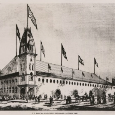 From the 1850s to 1871, the site was home to a passenger station for the New York, New Haven, and Hartford Railroad. The Madison Avenue Station became unnecessary with the opening of Grand Central Terminal on 42nd Street in 1871, and the space was rented to P.T. Barnum, who converted it into his famous Hippodrome (an ancient Greek-style stadium), which opened in 1874. Barnum was the proprietor of a traveling circus (which would later be a constituent of Ringling Bros. and Barnum & Bailey Circus) and intended the site to house a permanent show separate from his roadshow that would feature circus acts, chariot races, and a menagerie.