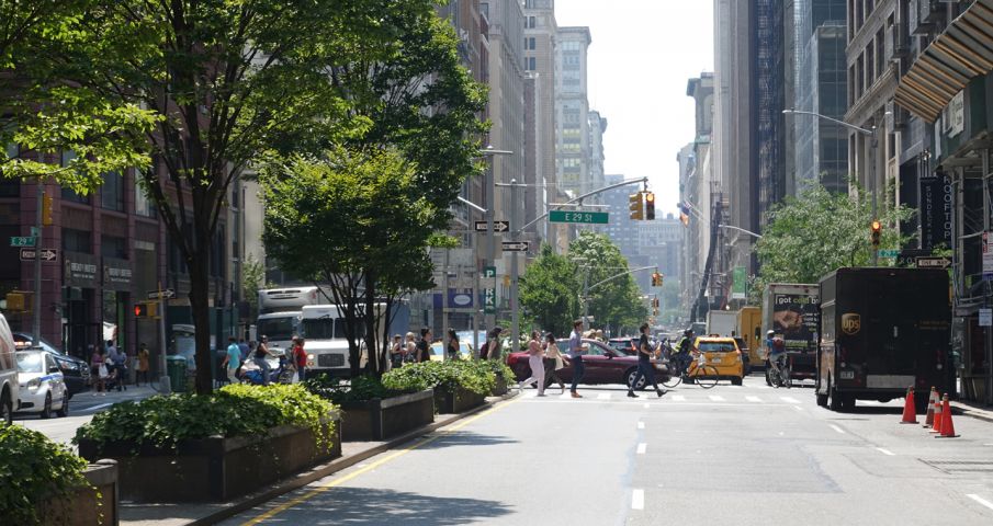 This summer, the Partnership collaborated with the New York City Department of Transportation (DOT) to create the new Flatiron Slow Street, which has transformed Broadway between 21st Street and 23rd Street into a more pedestrian- and cyclist-friendly thoroughfare. The project is part of the Partnership’s long-term vision of a pedestrian-focused Broadway corridor through Flatiron and NoMad, which has also included the construction of the Flatiron Public Plazas in 2009 and Manhattan’s first Shared Street, from 24th to 25th Street, which was unveiled in 2017.