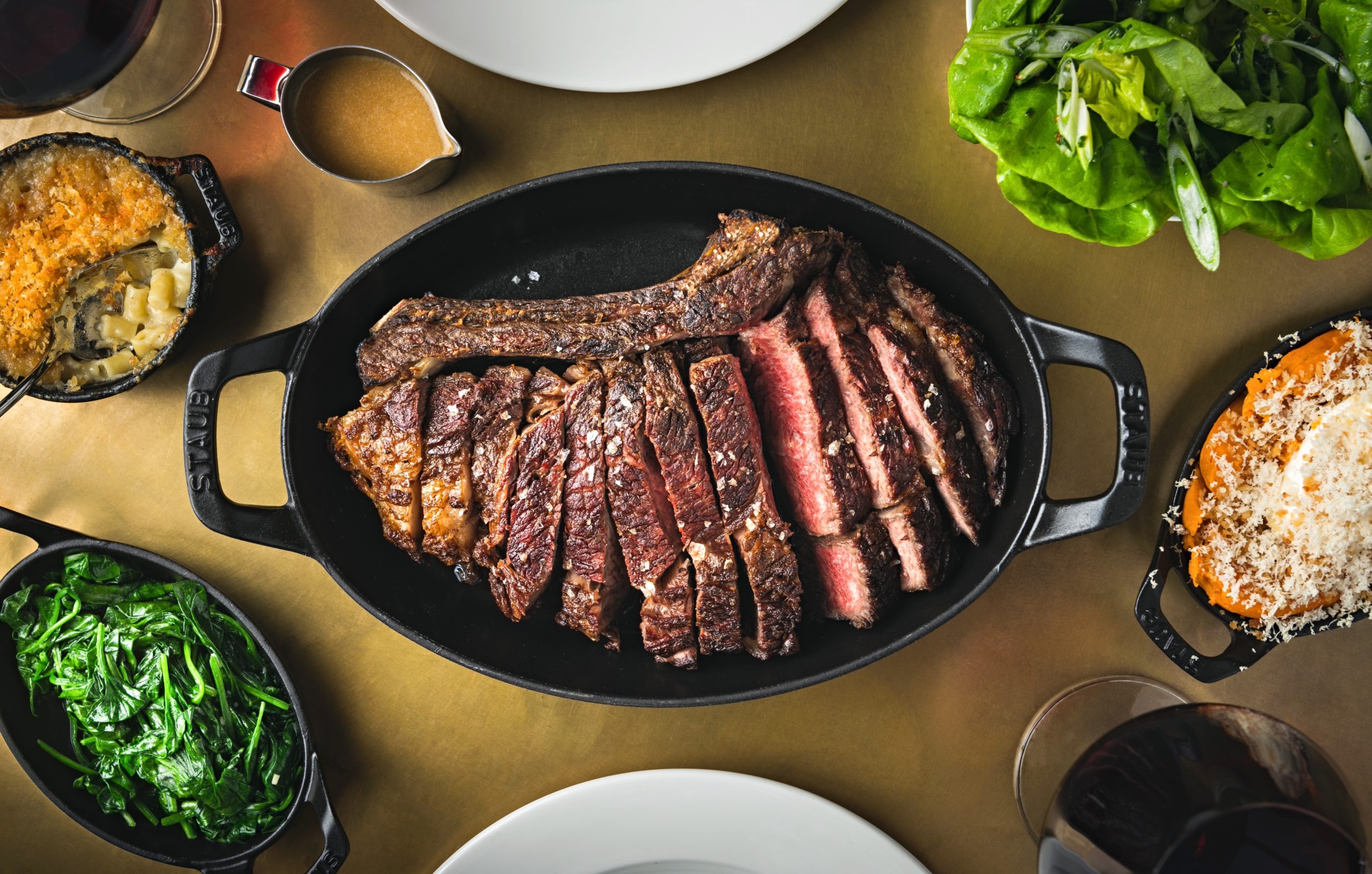 Group Executive Chef Matt Brown and Executive Chef Matt Bernero curated a dinner menu curated a dinner menu anchored in the restaurant’s signature steaks like the Rib-eye, Porterhouse, T-Bone, Strip, and Prime Rib Chop, complemented by sauces including Bone Marrow Gravy, Anchovy Hollandaise, and Bayley Hazen Hollandaise.