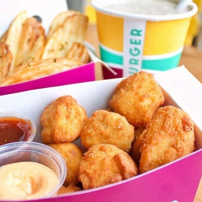 Craving comfort food that isn’t a juicy burger or sandwich? PLNT Burger has you covered with their PLNT Chili Bowl that includes 12 oz. of house-made Beyond Meat chili, NewFields cheddar shreds, sour cream, and green onion. Or you can order an 8, 12, or 24-piece of Lil’ Dippers, crispy chik’n nuggets paired with a chef-crafted dipping sauce of your choice: garden herb, maple mustard, spicy aioli, bloomies sauce, sweet heat, or BBQ.
