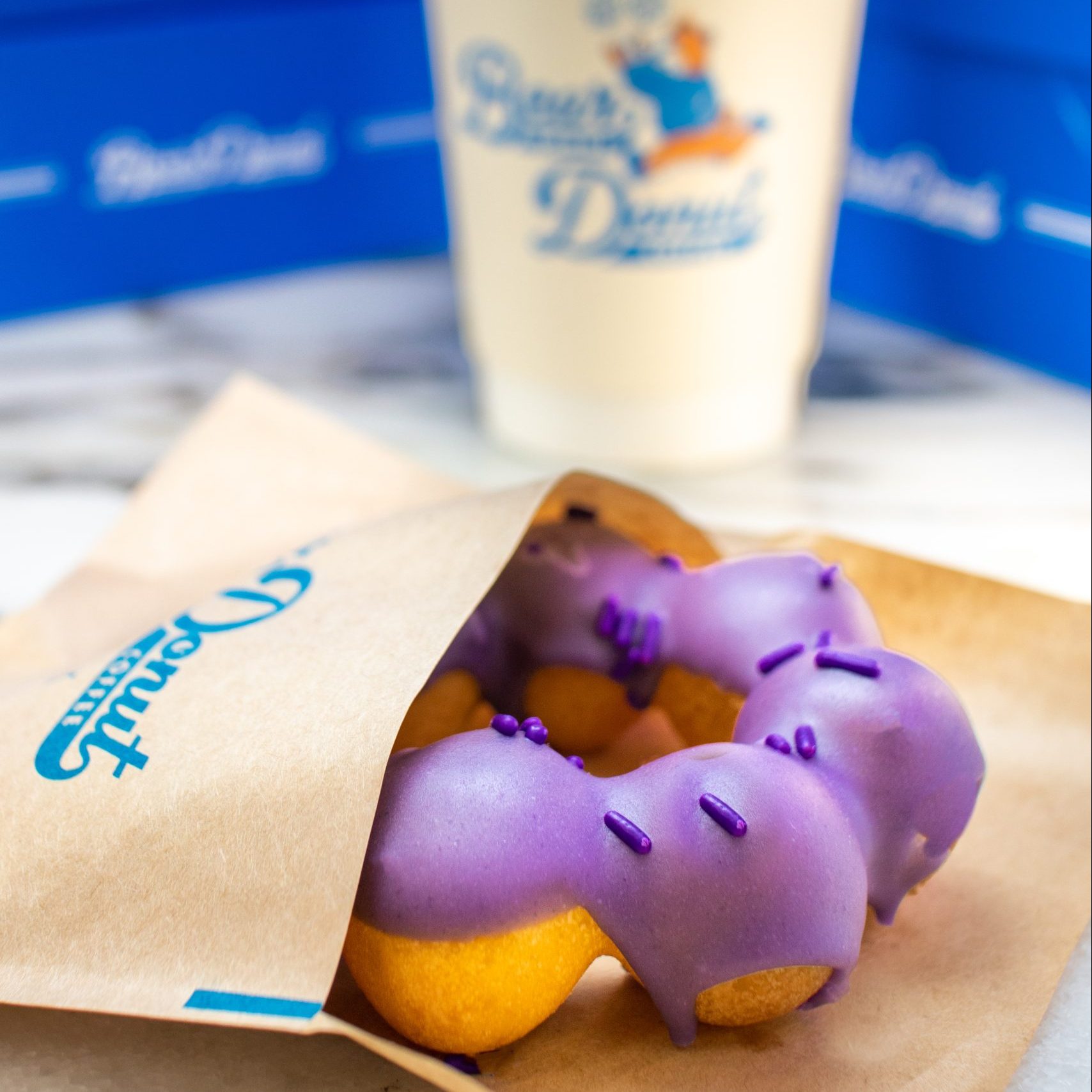 Baked in-house twice daily, Bear Donut offers specialty and inventive twists on classic donuts. The menu features bubble-ring shaped Bear Donuts and round Glazed Donuts, both made with sweet rice flour, light and airy brioche Cream Puff Donuts, and Limited Edition donuts. The delicious treats come in a variety of flavors and toppings that you can pair with house-made Soft Serve Ice Cream, Draft Milk, or Coffee from La Colombe. Order a single donut, or a donut box of 4, 6, or 12 to enjoy an assortment of options. Highlights of Bear Donut and Glazed Donut flavors include: Lavender, Pink Chocolate, Coffee Toffee, and Grapefruit Poppy Seed. Cream Puff Donut varieties feature Dirty Choco, Matcha Custard, Double Milk Tea, and Strawberry.