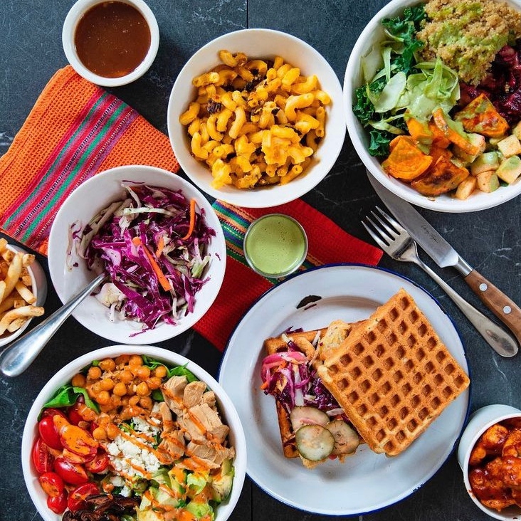 Pure Grit BBQ’s menu features a variety of plant-based, gluten-free dishes, including, Small Bites, Smoked Main Plates, Sandwiches, Salads, Sides, and Desserts. To start, order a customer favorite such as the Mac + Cheese served with Shiitake Bacon and Almond Parmesan. Next, try a Smoked Main Plate and choose your meat: Impossible Cut, Pulled Jackfruit, Mushroom, or Tofu. Smoked in-house featuring Pure Grit BBQ’s signature sauces and rubs, each plate includes Cornbread Waffles as well as your choice of traditional sides like Coleslaw, Baked Beans, Potato Salad, Charred Broccoli Salad, Fried Sweet Potato Bites, and French Fries.