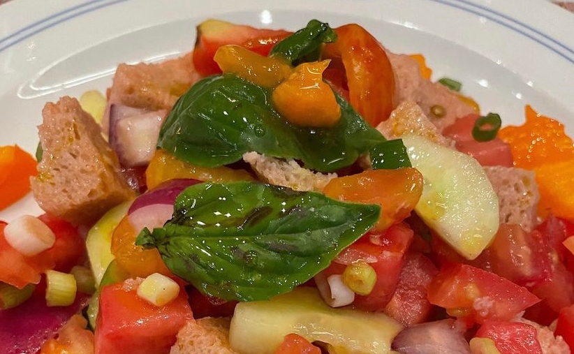 Acclaimed Chef Mark Strausman walks us through how to make this dish that captures the essence of the season. “This refreshing salad is one of my favorite ways to use the beautiful tomatoes of late summer. It’s also a good way to make sure we use up any extra bread from our bakery—our sourdough, day-old, is perfect in this salad. If you don’t have sourdough, any good artisanal white or wheat bread will do.”