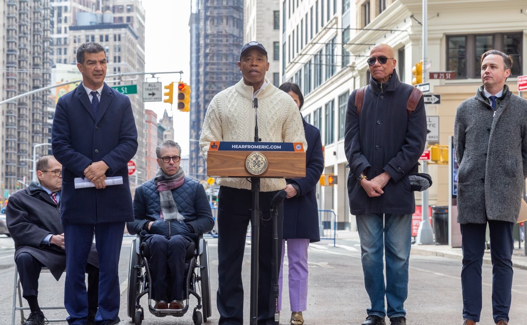 (NEW YORK, N.Y.) – New York City Mayor Eric Adams, Congressman Jerry Nadler, New York City Department of Transportation (DOT) Commissioner Ydanis Rodriguez, and Flatiron NoMad Partnership President James Mettham, today kicked off construction on a new phase of the administration’s “Broadway Vision” plan, which will create new public spaces and make streets safer between Madison Square and Herald Square in Manhattan. This phase of the plan will deliver two new plazas, shared streets, and a two-way bike lane on Broadway from West 25th Street to West 32nd Street. The subsequent phase will deliver permanent capital improvements along Broadway from West 21st Street to West 33rd Street.