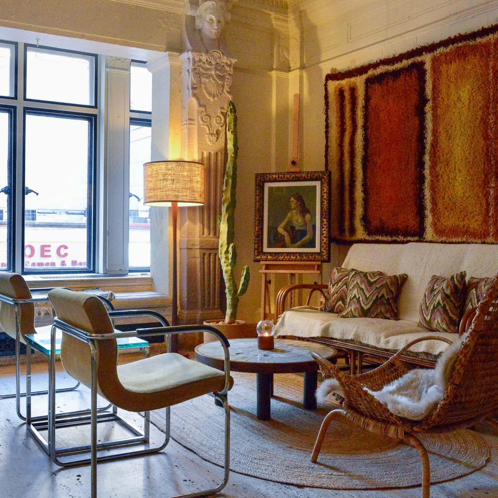 At 2,400 square feet, Georgia Room’s interior features the color palette of the southwestern desert with warm, natural, and vibrant tones and aims to feel like feel like an elegant and funky artist’s home that you were invited to a party at. Inspiration is taken from Ghost Ranch, the residence and studio of Georgia O’Keeffe as well as the landscapes near Santa Fe, Abiquiu and Taos, New Mexico. The high energy feel of Georgia Room comes from O’Keefe’s connection with New York City as her first gallery was in Manhattan and pays homage to this era of her life with cultural programming and dancing with sounds by the city’s best DJs.