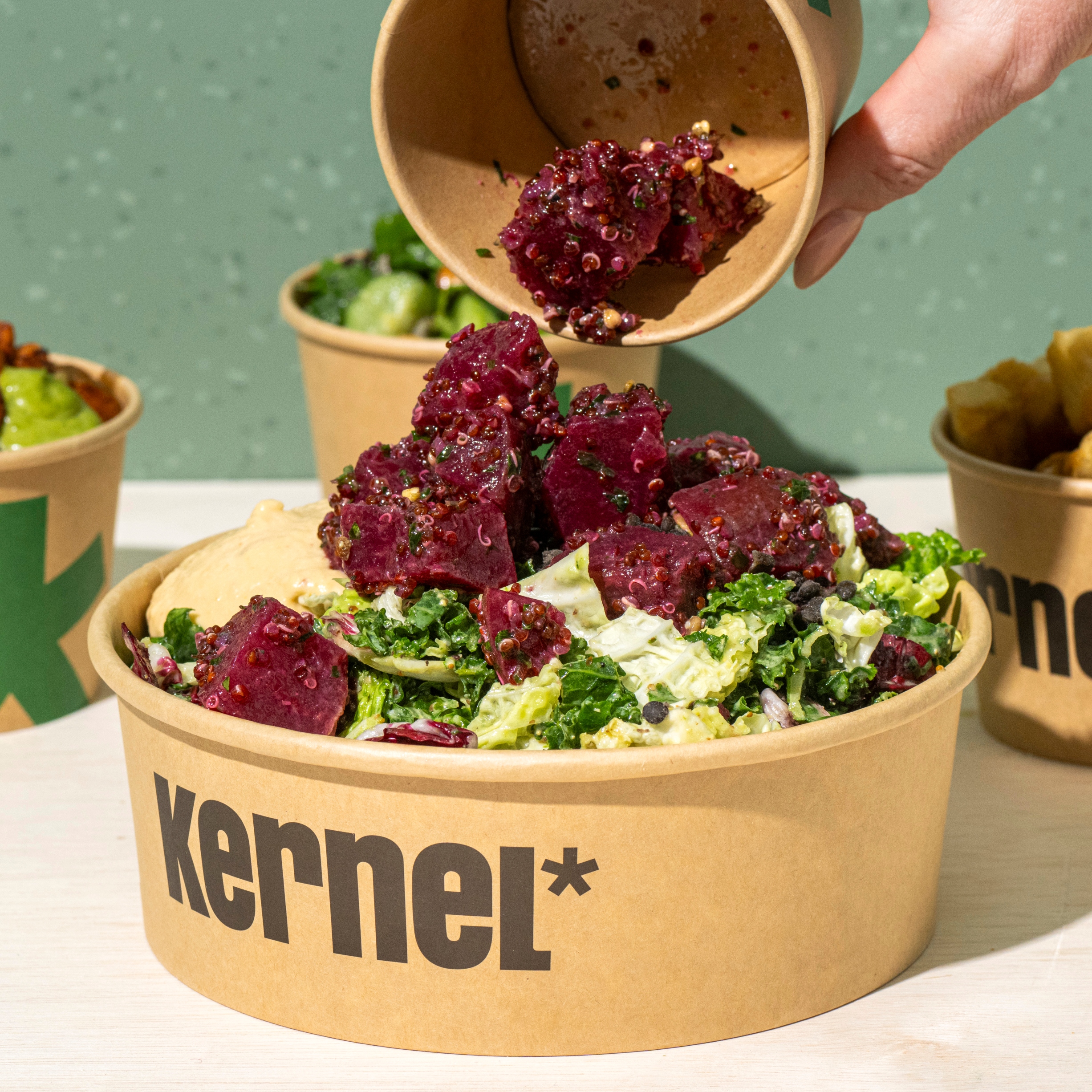 Kernel prioritizes being environmentally-friendly by having a smaller footprint. Through a reduced staff presence with the assistance of tailored automation, the Kernel Team is able to make each meal to order, correctly, and efficiently. This operation model lets Kernel streamline food preparation and cut down on food waste. Customers can easily use Kernel’s digital ordering system online or via app.
