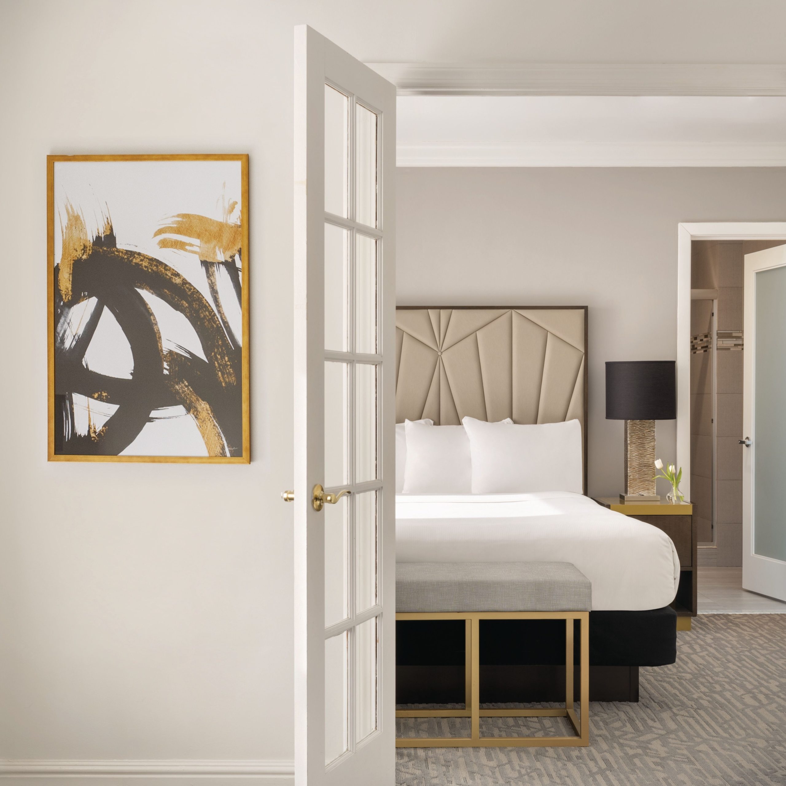 The façade of Martinique New York showcases a distinct building design inspired by the grand chateaus of France’s Loire Valley. Upon entering the hotel, guests are met by a welcoming ambiance amidst Art Deco-inspired décor. Featuring 504 guest rooms and suites, you can enjoy modern amenities for a comfortable stay. If visiting with your friends or family, you can reserve connecting rooms. Popular accommodations include the sophisticated 1 Queen 2 Room Suite which offers flexible space with a separate living and bedroom area divided by French doors. The spacious King Junior Suite features an open floor plan with a living space and bedroom area in one.
