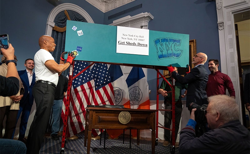 Mayor Adams Signs Historic Legislation to ‘Get Sheds Down,’ Remove Unsightly Scaffolding Across Five Boroughs