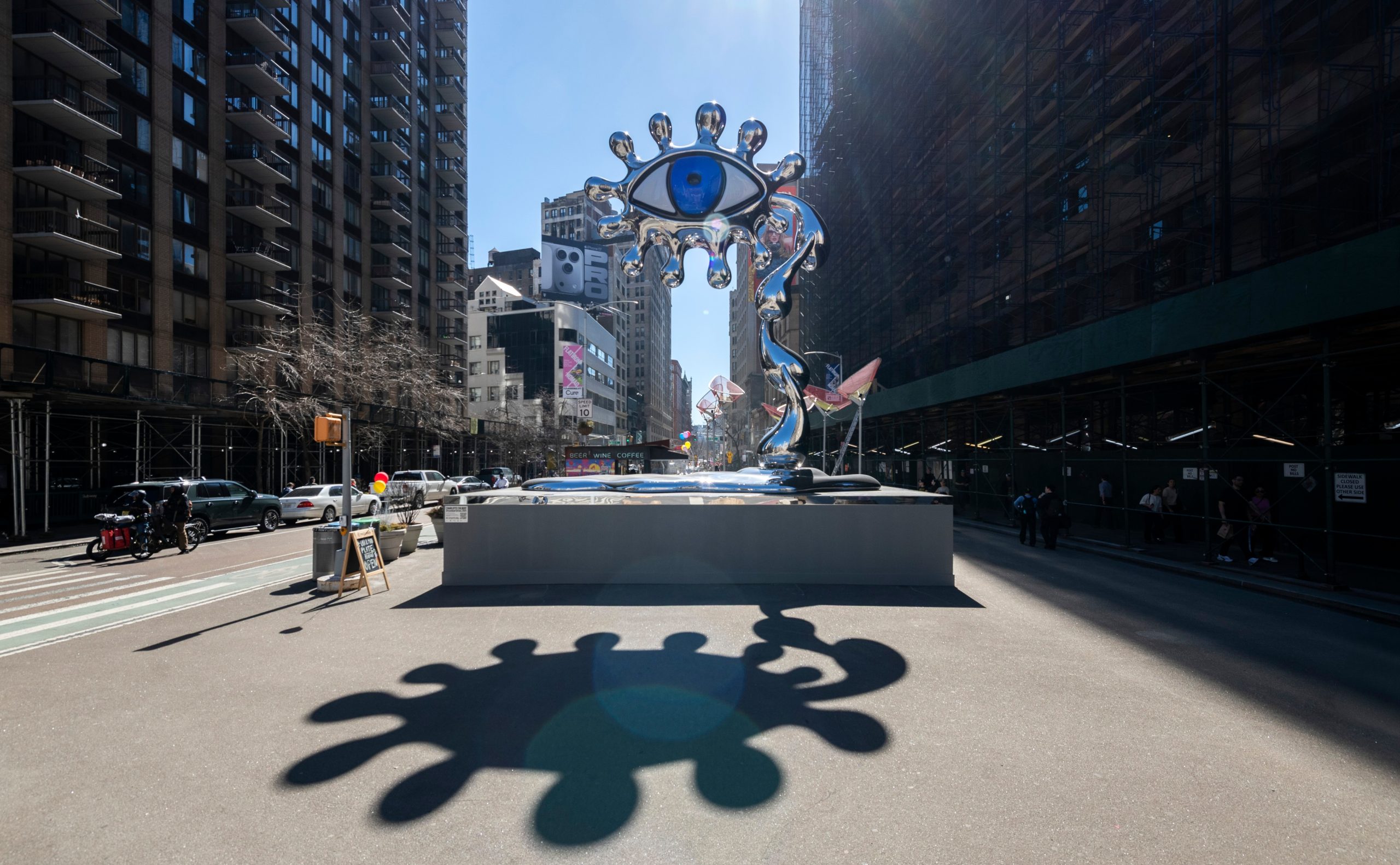 ‘Dreamland Sirens’ rises in the Flatiron NoMad district as a single, watchful, dual-coloured eye supported by a column of tears. Referencing the act of dreaming and manifestation as a collective force, and the ancient symbolism of the sculpture reflects the surrounding city back onto itself, bridging inner vision and public space next to The Flatiron Building, one of New York’s first steel-framed skyscrapers and Beaux-Arts architectural marvels. Flatiron NoMad’s bustling public plaza places ‘Dreamland Sirens’ in the center of hundreds of thousands of employees, residents, and visitors who come through the district each day.