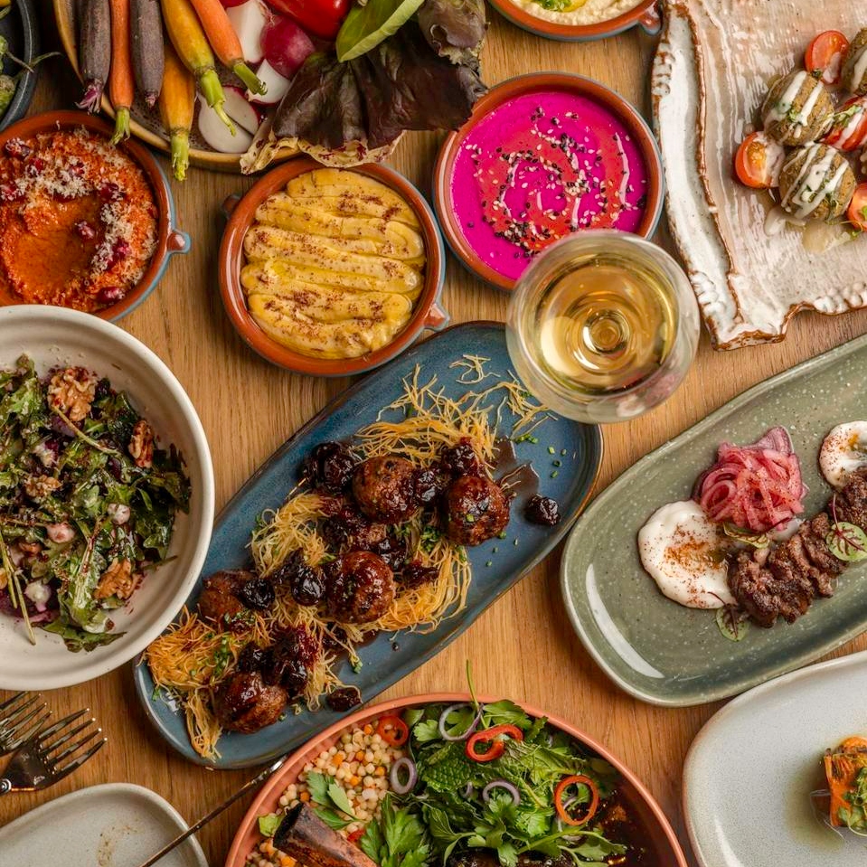 Start your dinner with a Mezze Trio accompanied with laffa pita & lettuce wraps and the Beet Salad with arugula, red onion, walnuts, labne. For larger dishes, choose from a range of meat, seafood, and skewers. Try the Braised Lamb with sumac, onion, and olive and the Mussels in a saffron, fennel, chili, and white wine broth. Order a few skewers such as the Beef Filet and Chicken Breast in an herb marinade. Complement your spread with sides like the Beef Tallow Fries with sea salt and toum, Harissa Cauliflower, and a Pearl Cous Cous Salad. Gather your friends and family to join Skewr for your next dinner out in the neighborhood! Skewr is open Tuesday – Saturday from 5 – 11 pm. Make your reservation.