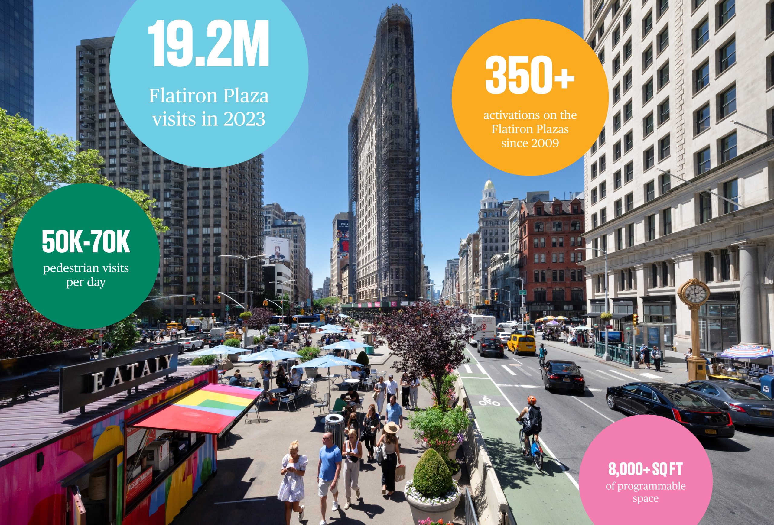 We maintain, manage, and beautify the Flatiron North and South Public Plazas in agreement with NYC DOT. Marketing activations and film/photo shoots are permitted through the Mayor’s Office via Citywide Event Coordination and Management (CECM), Street Activation Permit Office (SAPO), and Mayor’s Office of Media and Entertainment (MOME).