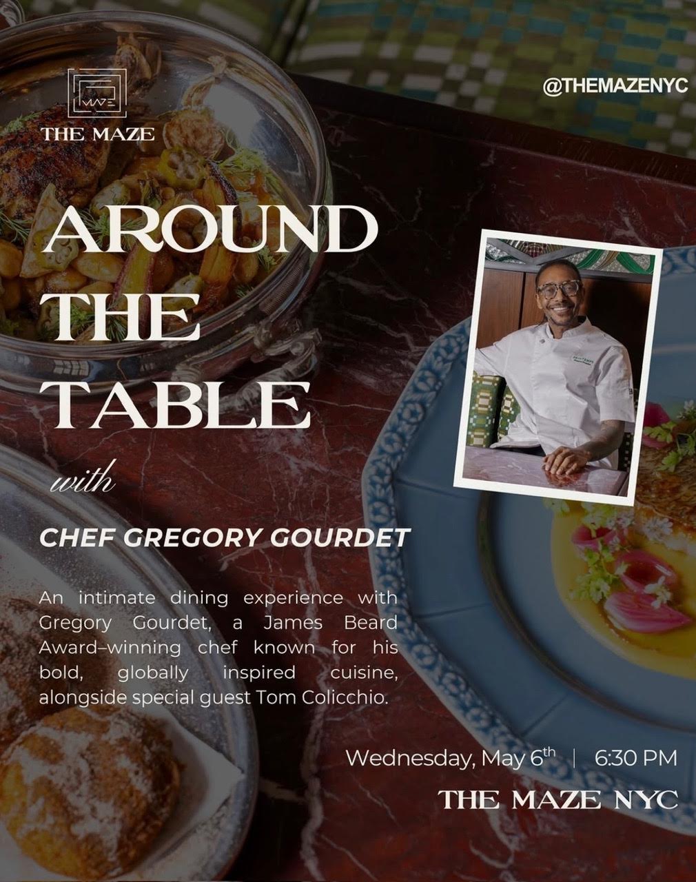 An intimate evening of food and conversation at The Maze, featuring Chef Gregory Gourdet in discussion with Tom Colicchio and Justin Gurland.
