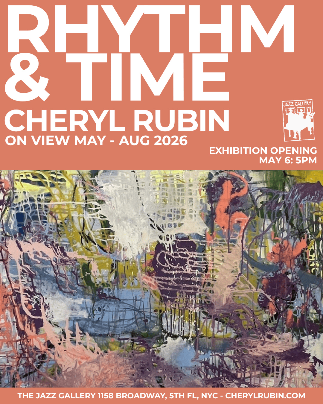 The Jazz Gallery is excited to present Rhythm & Time, a new series of paintings by New York City artist Cheryl Rubin. Classic jazz compositions are the inspiration for these expressive, process-driven abstract paintings.