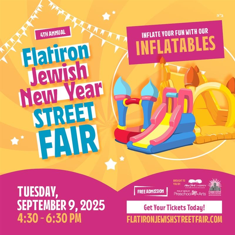 The 4th annual Flatiron Jewish New Year Street Fair will take place on Tuesday, September 9th from 4:30 – 6:30 pm in front of 40 West 22nd Street.