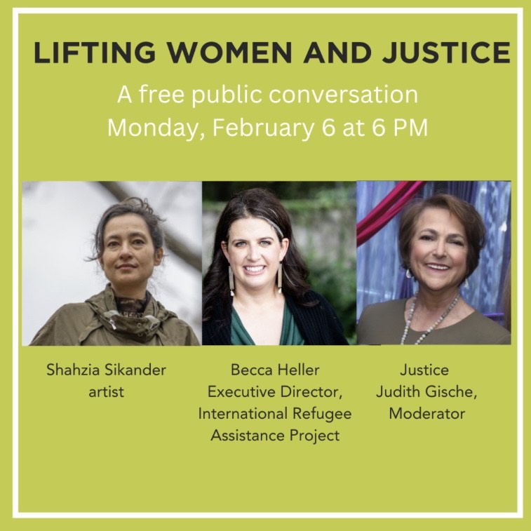 Artist Shahzia Sikander and Becca Heller, Executive Director of the International Refugee Assistance Project, will join in a public conversation on Monday, February 6 at 6 PM at Sony Square. Justice Judith Gische, who served as a judge for thirty-two years and is a member of the Board of Directors of the New York City Chapter of the New York State Women’s Bar Association, will moderate.