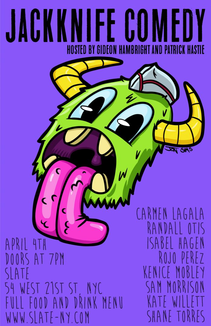 Head to Slate on Tuesday, April 4 at 7 pm for a Comedy Night featuring Jackknife Comedy, a monthly stand up show, hosted and produced by Gideon Hambright and Patrick Hastie. Purchase your tickets.