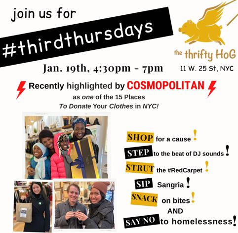 Come join us Thursday, January 19 from 4:30 to 7 pm at The Thrifty HoG at 11 West 25 Street.