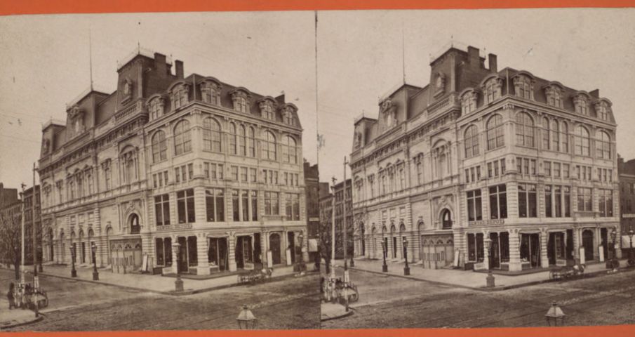 He built a theatre at the southeast corner of Sixth Avenue at an unprecedented cost of $1.5 million. It was designed by architect James Renwick Jr., whose works include St. Patrick’s Cathedral and the Smithsonian Institution, and it was considered the finest theatre in the land. Built of granite in an ornate Second Empire style, it incorporated a forced-air heating and cooling system, hydraulic ramps that raised vertically moving platforms to enhance scenery changes, and a device that allowed the house gaslights to be extinguished or lighted simultaneously during performances. It seated almost 1,800, with standing room for another 300, and boasted seven entrances on 23rd Street and another on Sixth Avenue.