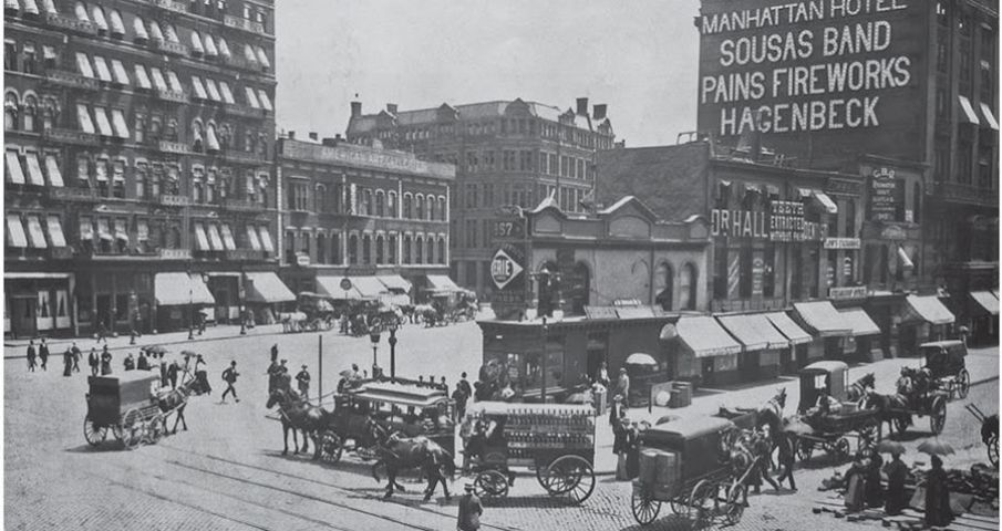 The visibility of electric signage in the location, however, would fade within two years due to businesses moving to the newly designated commercial hub of Midtown and the arrival of the Flatiron Building.