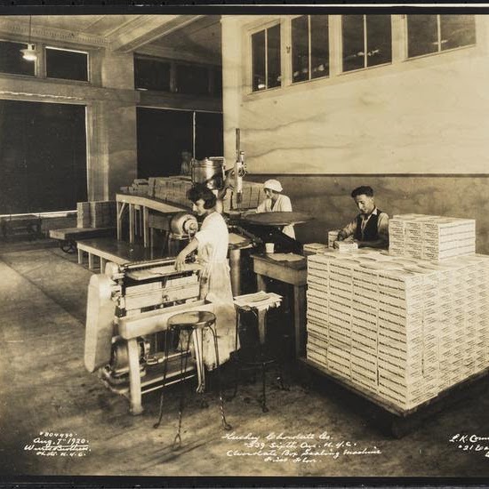Inside the Hershey factory on Sixth Avenue via Bowery Boys History.