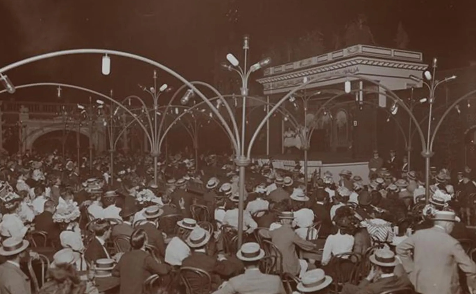 “When opened it was the grandest ever seen,” notes imbibemagazine.com, the award-winning liquid culture publication. “The lavish space was adorned with neoclassical arches and ornaments and was large enough to accommodate 800 comfortably, or 1,200 in a jam. On opening night, some 5,000 eager guests sought to reach the roof, although only a minority made it; even the band hired to entertain failed to reach the top.”