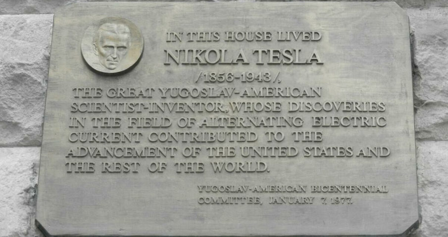 Six months after his death, the U.S. Supreme Court upheld an earlier decision on Tesla’s radio patent, thus naming him the real inventor of the radio, not Guglielmo Marconi, who had received the 1909 Nobel Prize in Physics for his work in wireless telegraphy. “The Court had a selfish reason for doing so,” notes pbs.org about the controversial ruling. “The Marconi Company was suing the United States government for use of its patents in World War I. The Court simply avoided the action by restoring the priority of Tesla’s patent over Marconi.” In recognition of Tesla’s triumphs in radio technology while living and working in Madison Square, a commemorative plaque was placed at 49 West 27th Street by the Yugoslav-American Bicentennial Committee on January 7, 1977, which was also 34 years after Tesla’s passing.