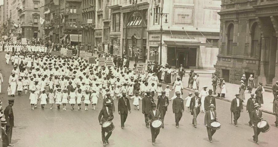 The Fifth Avenue march began at 59th Street and concluded at 23rd Street. “On July 28, nine or ten thousand Negroes marched silently down Fifth Avenue to the sound only of muffled drums,” recalled Johnson. “The procession was headed by children, some of them not older than six, dressed in white. These were followed by the women dressed in white, and bringing up the rear came the men in dark clothes. The streets of New York have witnessed many strange sights, but I judge, never one stranger than this; certainly, never one more impressive. The parade moved in silence and was watched in silence. Among the watchers were those with tears in their eyes.”