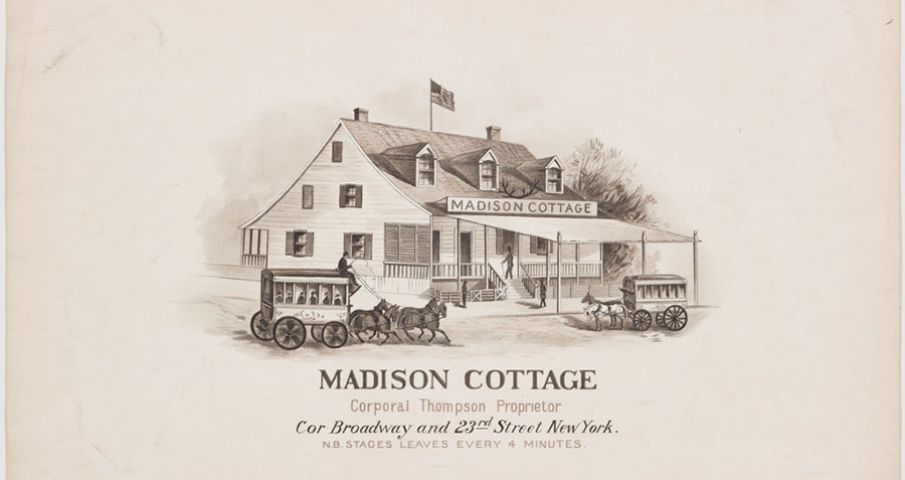 It’s July and time for a summer getaway! In recognition of this time-honored New York tradition, the Flatiron/23rd Street Partnership takes a journey back to the 1839 opening of the popular inn, Madison Cottage, at the corner of 23rd Street and Broadway.