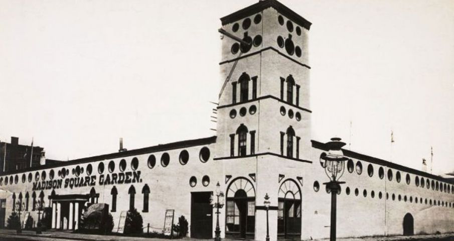 In 1879, Gilmore’s lease expired and on May 22, The New York Times reported that after extensive renovations and at the request of the Vanderbilts, “Gilmore’s Garden will hereafter be known as the ‘Madison-Square Garden.’” Together with its original hyphen, it made its public debut nine days later with a concert by a 60-piece band.