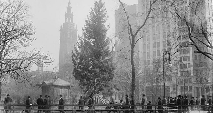 The concept of a community “Tree of Light” was a European-inspired idea reportedly launched in 1911 by Upper West Side resident Emilie D. Lee Herreshoff, a socialite and the wife of prominent chemical scientist and yachtsman J.B. Francis Herreshoff. She had proposed the plan to then Mayor William Jay Gaynor, according to Richard W. O’Donnell’s 2012 article “The Lighting of the First Community Tree” published in Arbor News by the Cassity Tree Service. Herreshoff’s initial request was denied, but later granted in 1912.