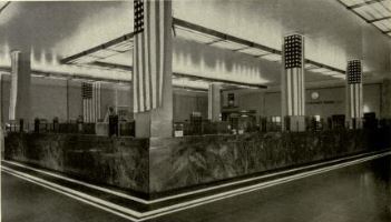 The designated site for the proposed post office had been acquired for a reported $379,693 and the building’s total construction cost would be $495,581, wrote C.W. Short and R. Stanley Brown via Public Buildings. When the three-story, 80,000 square feet, state-of-the-art post office opened for business, it was the first branch to resemble a banking institution with its décor. “An interesting feature of the lobby is the ‘bank screen’ treatment of the counters, the lobby, and workroom all being one room and not separated by a partition as is usual,” noted C.W. Short and R. Stanley Brown in their book Public Buildings. The facility was well-received by neighborhood retail owners and its publicity gained press coverage. In attendance at the opening day ceremony were Postmaster Albert Goldman along with “several members of the Twenty-Third Street Association and representatives of large wholesale houses in the district,” reported The New York Times on September 21, 1937.