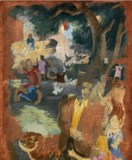 (via Smithsoinan American Art Museum, Kindred McLeary’s Murals,depicting Scenes of the Lower East Side (bottom) and Central Park (top).