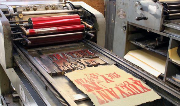 The 5,000 square-foot facility features equipment such as a complete letterpress print shop with six Vandercook proof presses, a 19th century Washington hand press, a composing room with cabinets of foundry type, a Charles Brand etching press, and a 36-inch guillotine paper cutter. In addition, there are two binderies that include nipping presses, standing presses, two board shears, and a three-ton Kensol hot stamping machine. Printmaking artist books and a fine arts collection of artist books and prints are a number of the reference materials available at the Center’s on-site library.