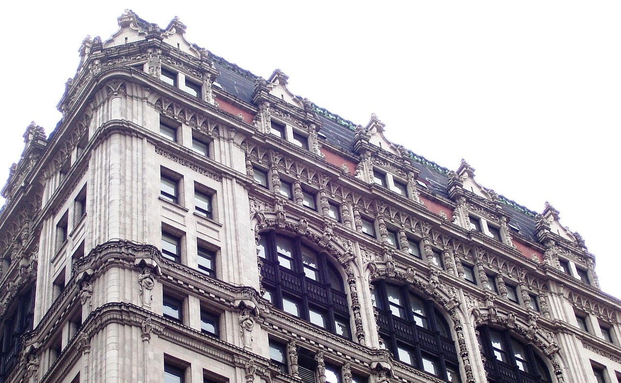 In October 1912, the 16-story steel-framed Emmet Building made its debut at nearly full capacity. Occupants ranged from silk merchants to the New York State Department of Labor. The New York Times would later characterize the skyscraper on April 15, 2010 as a “fortress of delicate Loire Valley detailing, enough doodads for a block’s worth of Vanderbilt townhouses.” Three years later, on February 22, 2013, the newspaper emphasized how the building’s “16 stories are encrusted with terra-cotta decorations, from comical monks to full-length medieval figures, together suggesting an over-the-top Indian temple crossed with a citified chateau.”