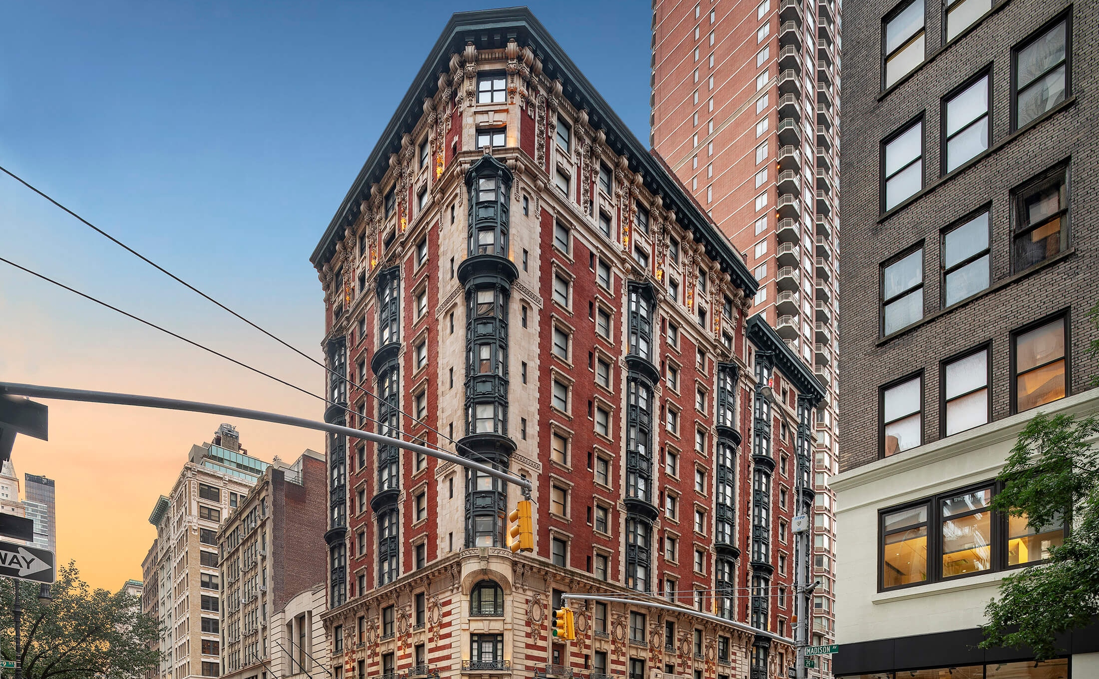 The building’s distinctive features would include “sculpted lion heads, festooned cartouches, bays of bowed windows, ornamental metal, and stripes of limestone and red brick,” according to the NYC Landmarks Preservation Commission’s 2018 designation report. The LPC also noted that the Hotel Seville “complemented and supported the north of Madison Square neighborhood that evolved from affluent residential blocks into a bustling commercial and business district.”