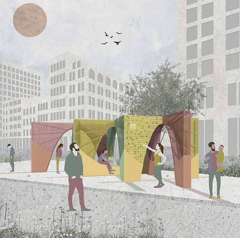 MT: We began with the idea of interweaving; after almost two years, we are all returning to the public spaces of our cities, where our paths and lives will intersect. Our earliest sketches showed criss-crossing arches inspired by agricultural structures and garden trellises. Drawing from the intersecting angles of the site, we explored how we could interweave parabolic arches to create a robust structure and welcoming, dynamic form.