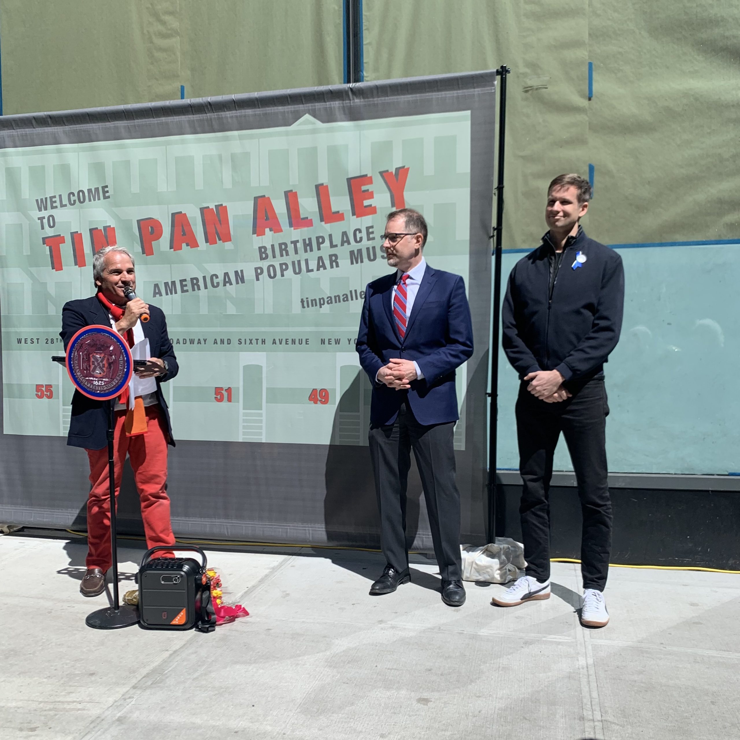 1. Congratulations on the Tin Pan Alley/West 28th Street Co-Naming at the northwest corner of Broadway and 28th Street earlier this month. As founding director of the Tin Pan Alley American Popular Music Project, share with us your integral role in the launching of this historic event.