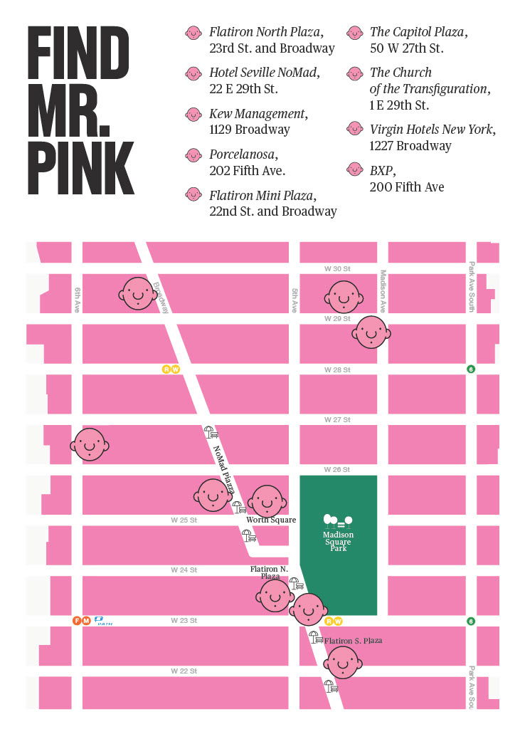 Our latest seasonal program Flatiron NoMad Glows Pink is here! Now through the end of February, celebrate winter with the cheerful art installation Mr. Pink featuring 10 sculptures across the neighborhood created by Philippe Katerine.