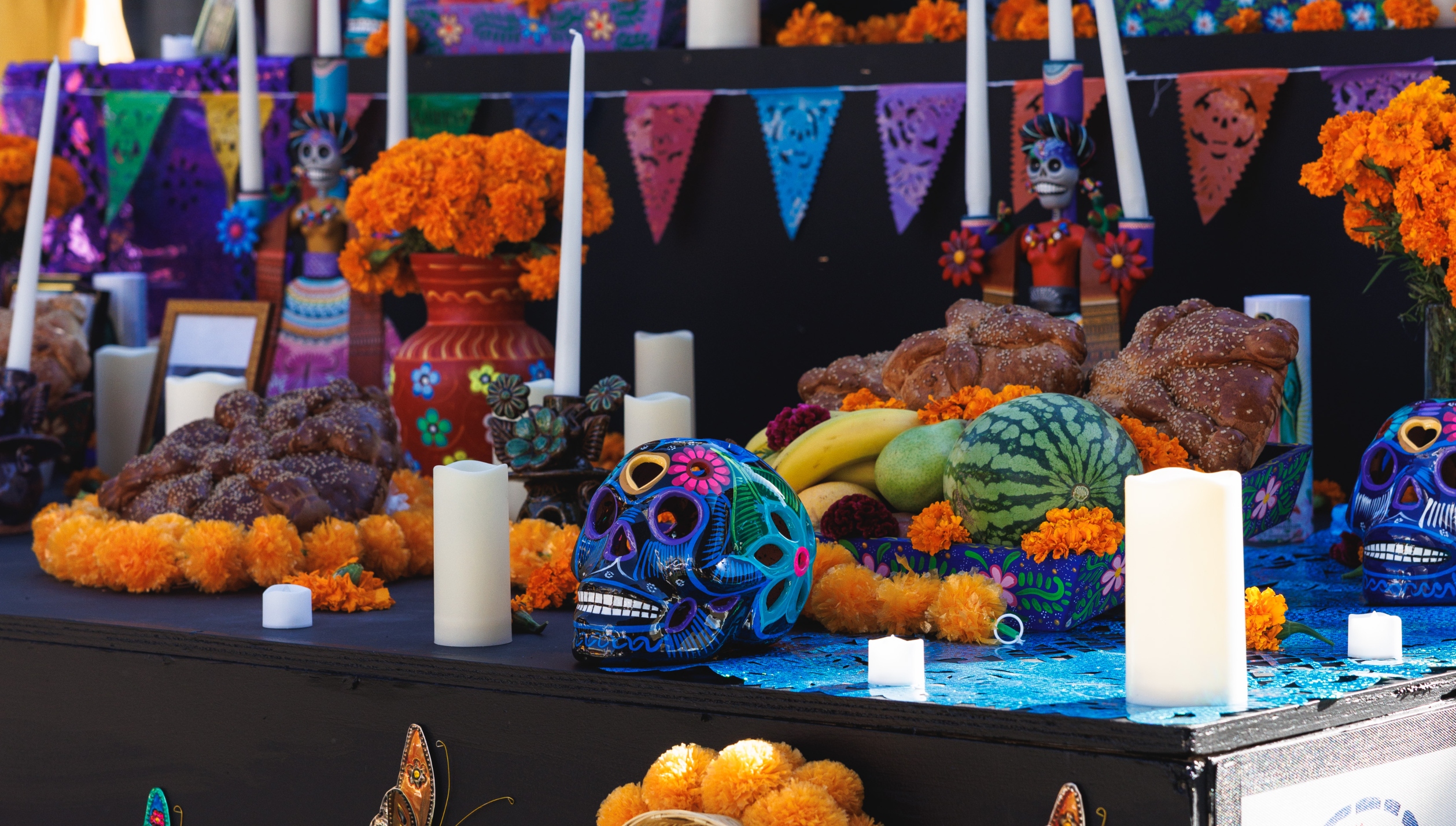 Día de Muertos. Octubre – 2 de Noviembre. Este año, celebramos la sagrada tradición con un mes de activaciones, un altar comunitario de dos días, y apoyo a las tiendas mexicanas locales.